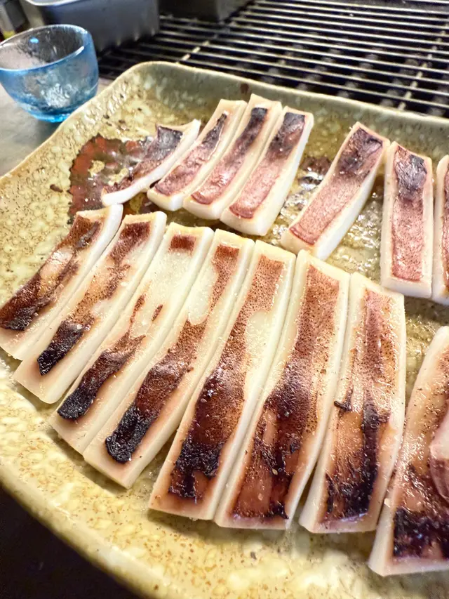 7. 魷魚一夜干 - 將魷魚風乾一夜後再烤製,濃縮了海洋的鮮味,口感變得更加紮實有嚼勁,鹹香惹味。