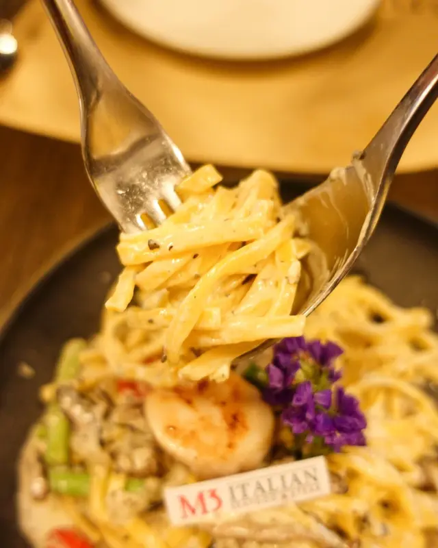 🍽黑松露忌廉手掣意大利粉配日本北海道特大帶子 $198