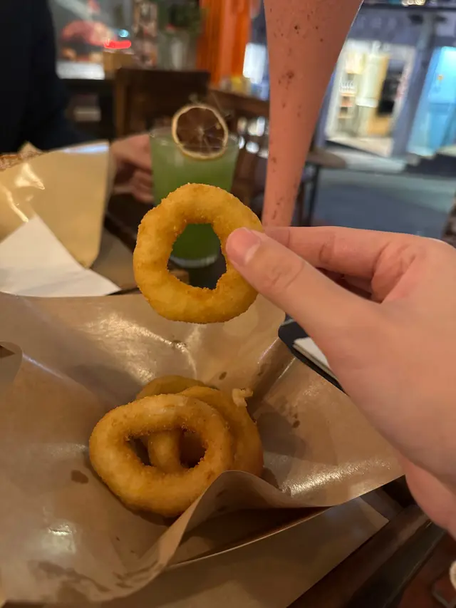 之後叫咗兩個小食,金黃炸魚條和喪脆洋蔥圈都好食!金黃炸魚條外酥內嫩,喪脆洋蔥圈真係好喪脆haha,正!最後,見到burger店有得叫Mocktail咁正!就叫了2杯。