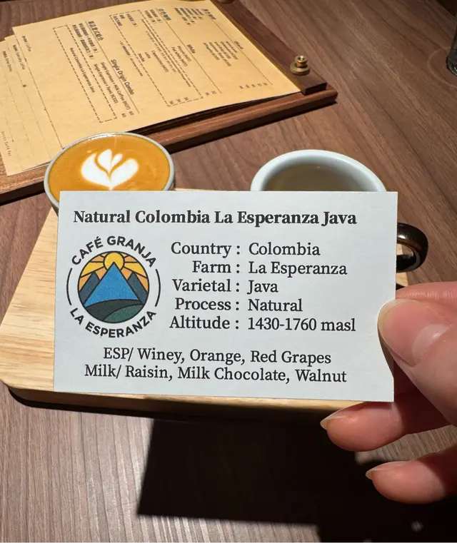 個人都幾鍾意combo,同一款咖啡豆可以飲到兩種味,咖啡豆係哥倫比亞日曬,同咭片寫嘅一樣,espresso飲到橙味,果味,少少酒香,口感亦好濃郁,好正🤩 奶啡就以朱古力奶,有啲果仁