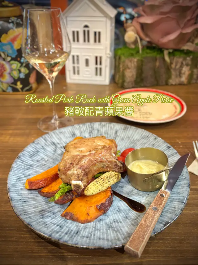 主菜係烤得恰到好處嘅豬鞍,一切開見到微微粉紅色,鮮嫩多汁。青蘋果泥增添清爽嘅酸味,中和了肉的油膩感。