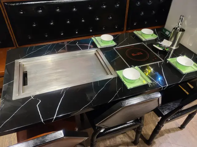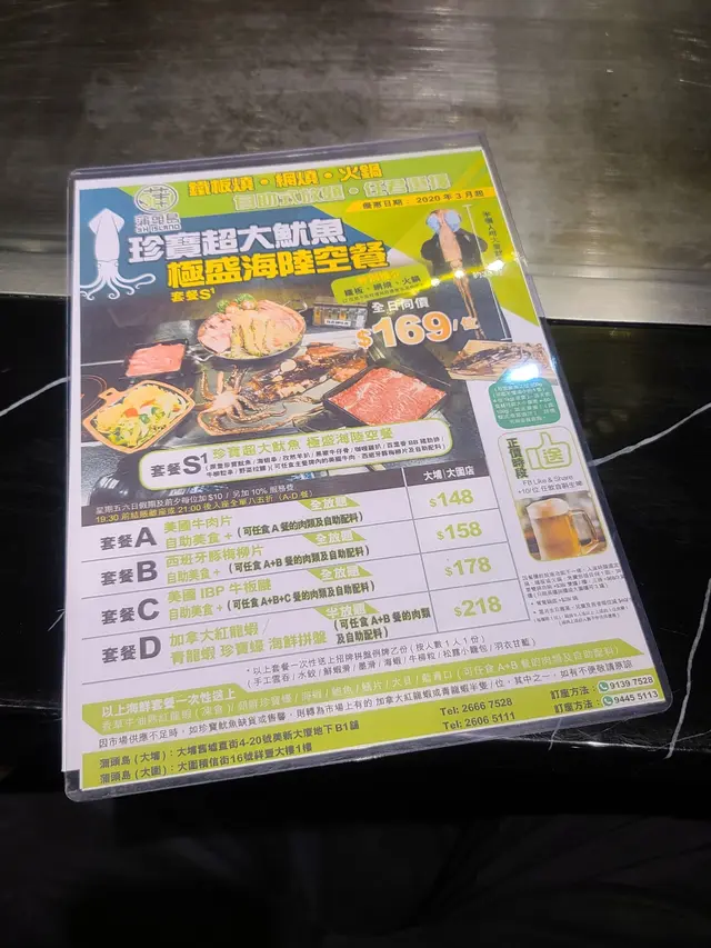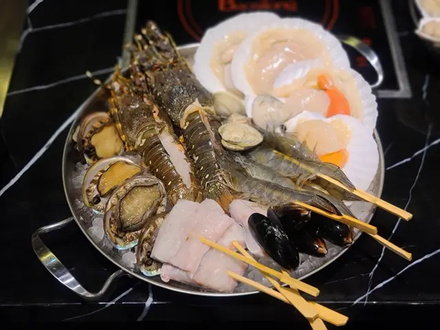 這間餐廳地方甚大,估計有三千尺以上,特別之處是可以同時提供鐵板燒、網燒和火鍋,讓客人可以同時享用不同方式煮製的食物,而且店內設有魚缸養殖海鮮,因此食材亦是相當新鮮。