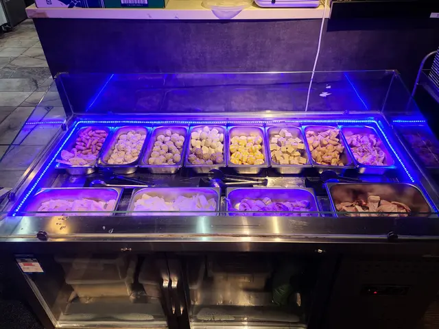 自助美食區的選擇眾多,有飲品、公仔麵、串燒、街頭小食等,而且還有十二款醬料可供選擇。我們拿了已製作好的牛肉串、炸薯條、炸魷魚、炸春捲,入口香脆惹味,食物製作時間恰好。此外,我們還選了些食材自己煎製,有香腸、午餐肉、各類肉丸等,入口新鮮彈牙,脆口入味。