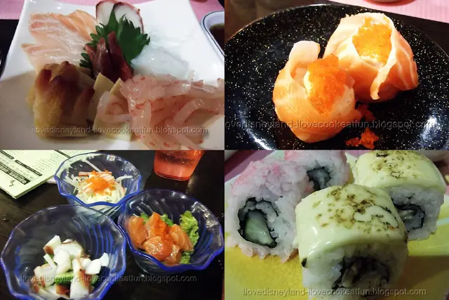 刺身就有點兒過份, 我只是每款寫4件, 剌身師傅竟然把魚片一片開二條, 二片開四條咁俾我地, 一條條魚片嘅口感係唔夠實在, 雖然可以叫多幾次, 但係口感不妥就大件事。花之戀只有2片三文魚包住飯團, 飯有生米而魚也沒有魚味。