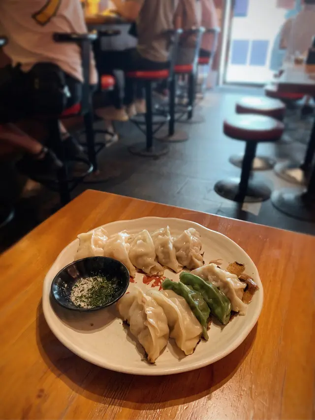 五種餃子入邊有海老餃子,蒜香餃子,洋蔥餃子,九條蔥餃子,同埋應該係野菜餃子。五種入邊覺得海老餃子係最好食,有啲蝦同埋菜,其他嗰啲我都覺得超級普通,蒜香餃子又唔算特別出味,都係唔同菜同埋肉嘅配搭😅皮就正常,餡料亦都唔係特別多,食完我都唔夠飽,係我朋友都唔夠飽🤷🏿♀️覺得自己買啲急凍餃子返屋企自己煎應該都係差唔多,或者去附近八方雲集食餃子仲飽,又要平啲。然後佢仲有加一💩最後食完之後走咗去買蛋撻食先夠飽😂