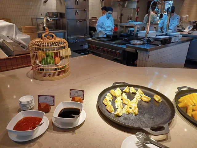先嚟個生滾靚粥,傳統要填紙仔下單。依家選好配料後交給職員。等十分鐘後自取。個粥好綿滑。配料花生、班塊、皮蛋、雞肉,全部採用上等食材。好耐都無食過咁香滑爽口既靚粥。之後自取中式傳統點心。蝦餃、燒賣、春卷、腸粉、叉燒包等等係頭選。每款點心造到好精緻,叉燒包造到似米奇頭。每款點心都好美味。傳統點心巿價大約$40一籠,每籠點心都造到好大個。但因這裏是點心放題。每款點心造到好細份。方便食客食多幾款不同點心。我個人建議加入少量放係Buffet Line枱上既銀魚醬。每樽單售$158。混入中式點心,滋味無窮