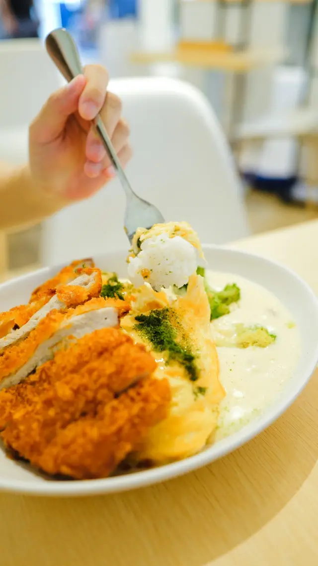 芝士吉列豬扒蛋包飯炒蛋好滑嫰啊!