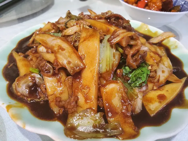 上海炒年糕 - 年糕質感Q彈尚好,不過調味上也是略咸....
