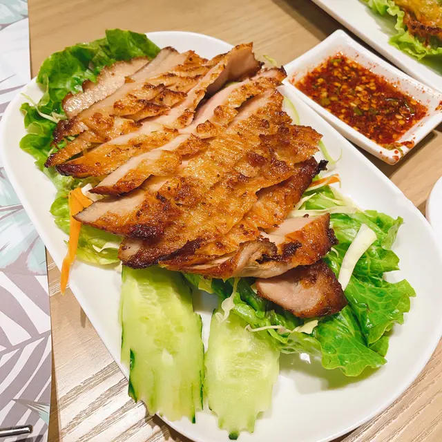 我地叫左燒豬頸肉,呢個都ok,燒得啱啱好,有小小燶邊😬係好典型的味。我覺得一定要點個個醬,用魚露,辣椒整,好惹味刺激😚 份量唔多,正正常常