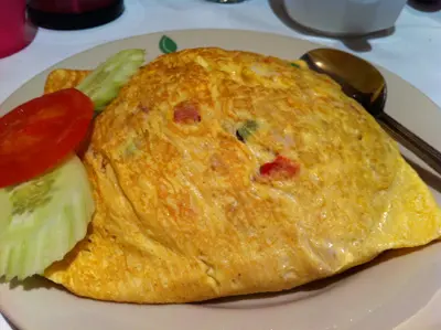 蛋包海鮮炒飯就沒甚過人之處。飯身偏油,海鮮一類如魷魚及蝦隻都盡皆一口雪味,吃起來自然乏味....