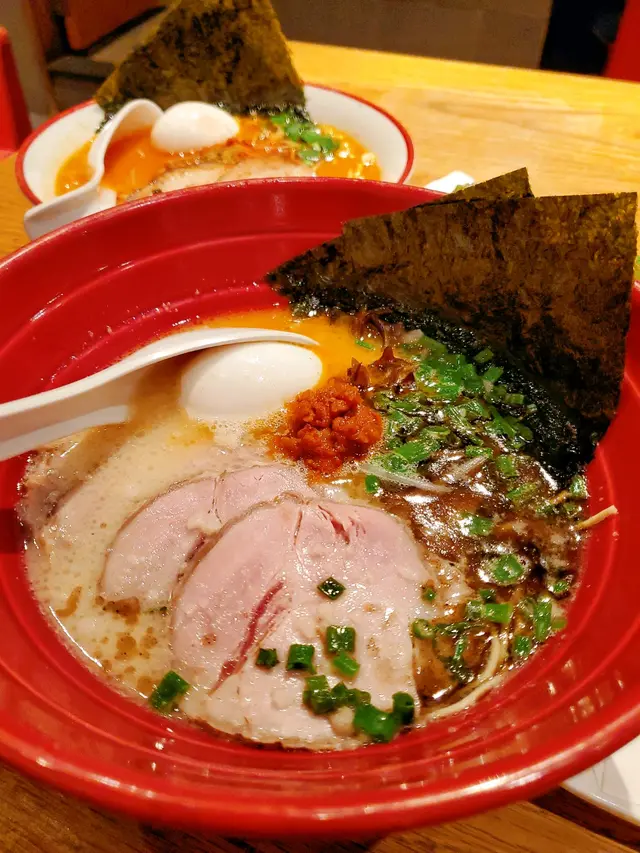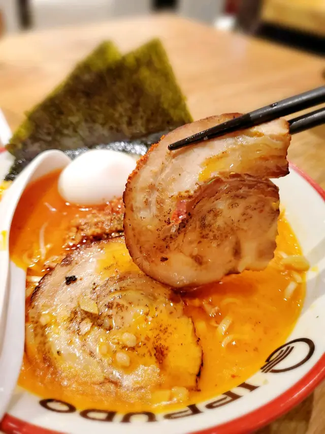 拉麵比傳統嘅豬骨湯更加濃郁層次感,香油和赤味噌融合在一碗拉麵裡。慢煮豬柳叉燒入味易入口,配菜也有經典鹽味半熟玉子🥚