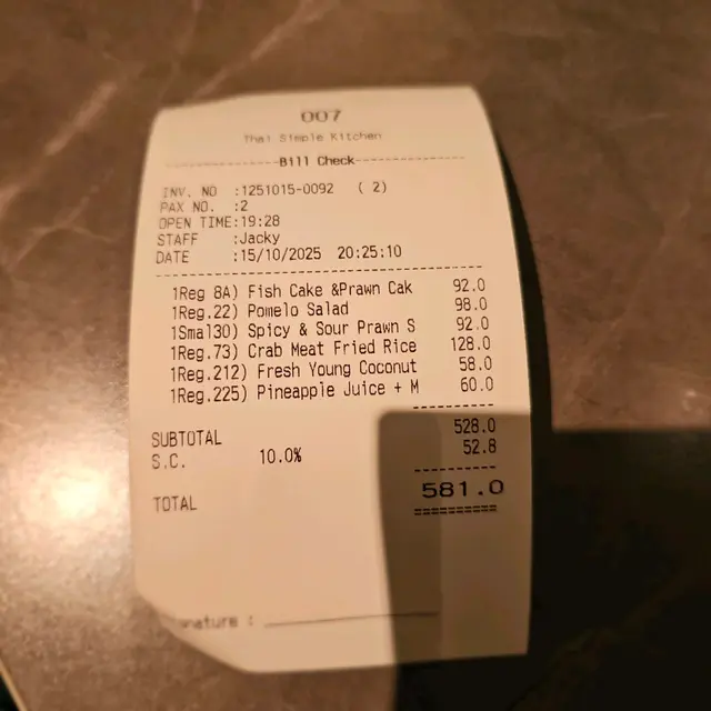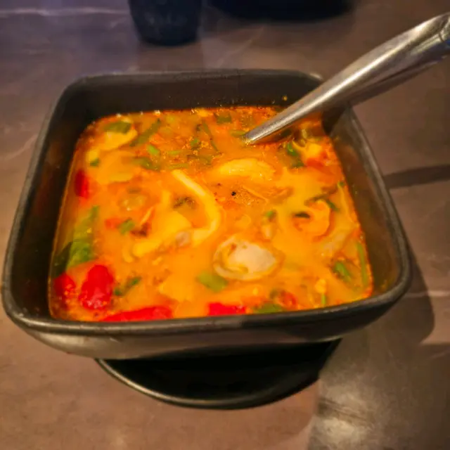 食泰菜當然要飲冬蔭功湯啦!其份量足夠二至三人的冬蔭功湯,湯料相當足包括有草菇、香茅、檸檬酸、辣椒,蝦等。 整體味道酸酸辣辣相當開胃,但辣的味道較突出飲完後整個人暖笠笠不錯之選。