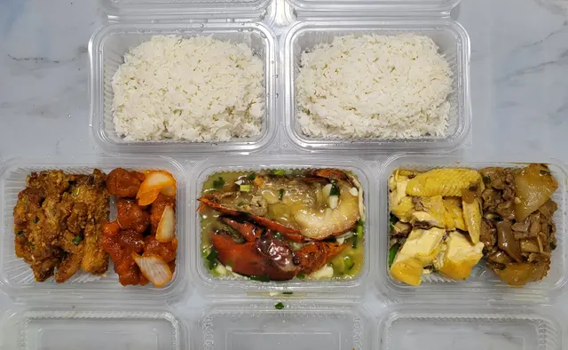 對我呢啲有選擇困難症真係太花都眼亂,職員問我想食咩時,我都心大心細問佢有咩好介紹,佢話招牌一定係龍蝦,除此之外菜膽雞都係比較多人點,其他就都係正常定常餸,最後我就揀咗四個餸再加招牌龍蝦,職員都好快手執每一款餸而且每一盒好飽滿,一啲都唔吝嗇。四個餸包括咕嚕肉、
