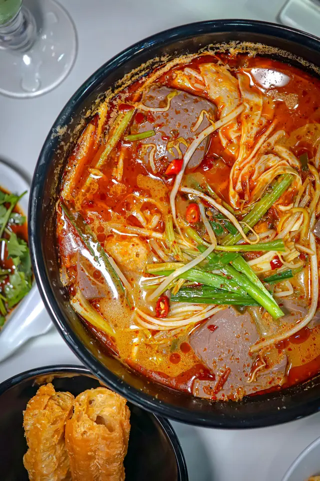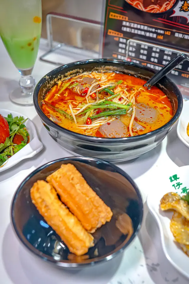 加入咗花椒、八角、辣椒🌶️,令水煮湯底香濃得嚟仲夠晒辛辣,配上台灣直送嘅鴨血同老油條,