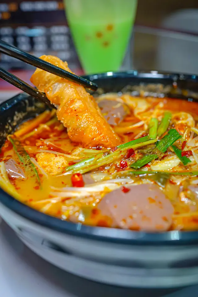 老油條浸落湯底2-3秒即刻食,香脆之中完美咁吸收晒水煮香辣嘅濃湯精華;鴨血爽口唔腥仲入口即溶,愈食愈上癮🤤