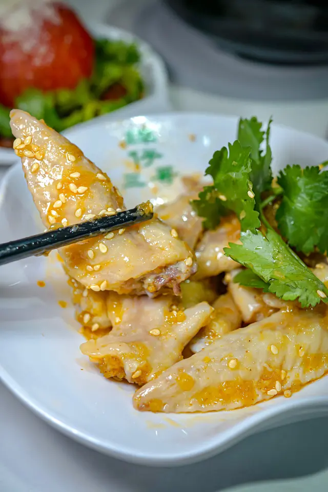 雞翼尖用咗涼拌方式去整,配合埋譚仔三哥秘製嘅醬汁同雙重香蒜: