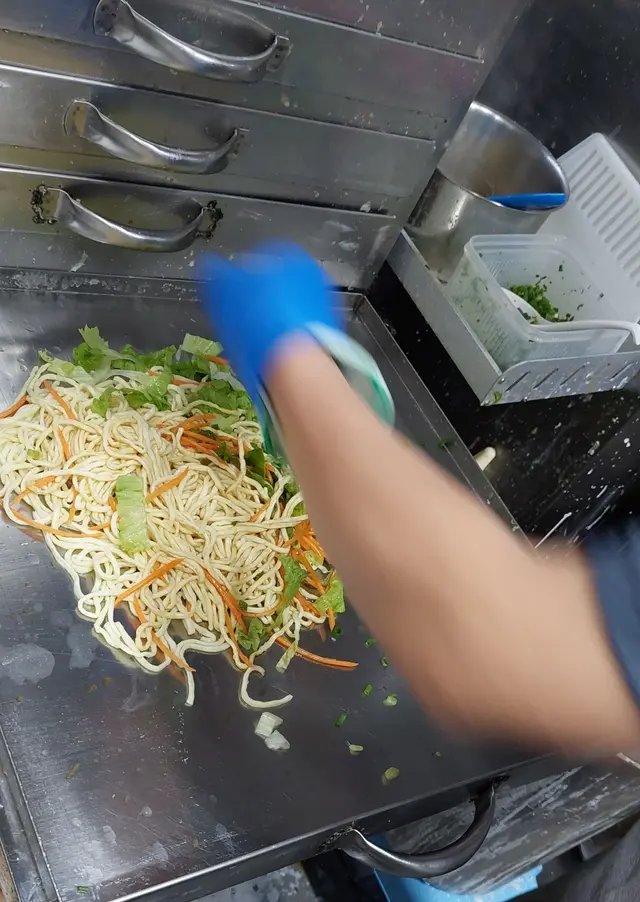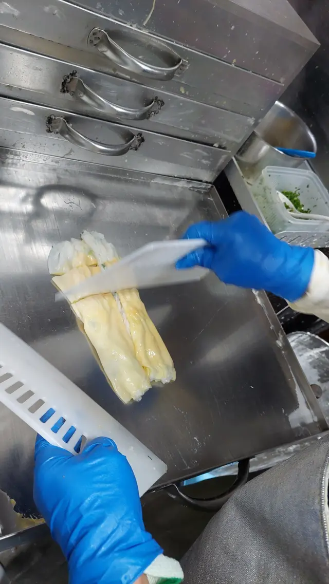 店子面積很少,等侯期間,近距離看老闆製作其他客人外賣的腸粉
