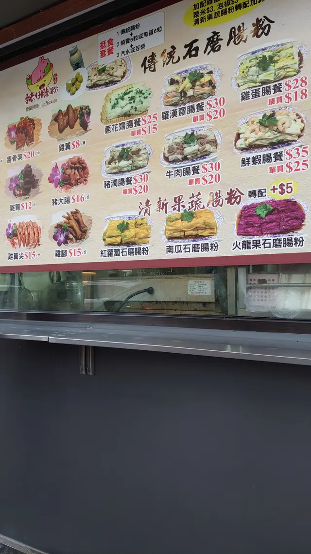豬仔石磨腸粉除了石磨腸粉,也有炸串串,豬仔生炸雞髀等食物:)