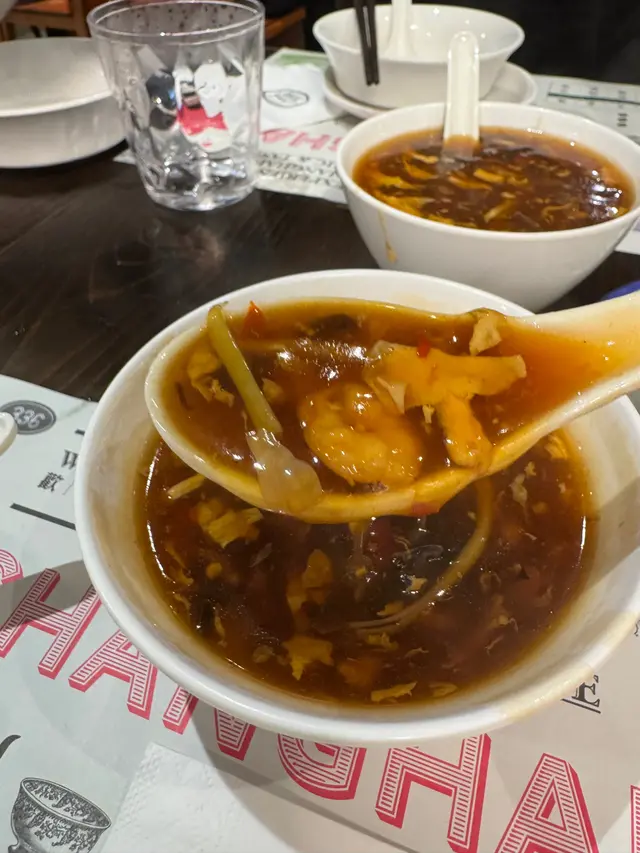 叫咗個抵食二人餐$398,前菜、湯、主菜、飯同甜品一個價包晒☺️我哋兩個都叫咗上海酸辣湯,酸酸辣辣好開胃,一食完全身熱辣辣😆小籠包有成4隻,隻隻皮薄多汁,一咬就爆開晒🥰