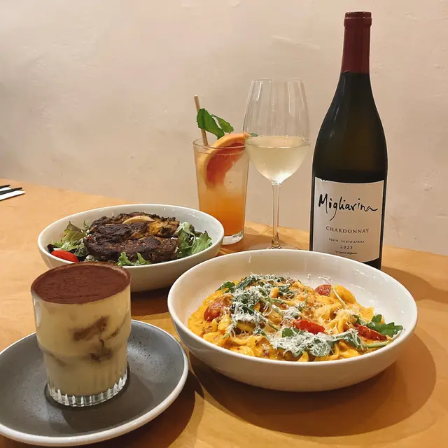 每日5-7pm都有Happy Hour🎉 $38-$68有超過十款紅白酒、啤酒揀🍾 抵飲!嗰杯南非白酒香氣清新,襯香料味重嘅沙律同辣pasta一流🇿🇦