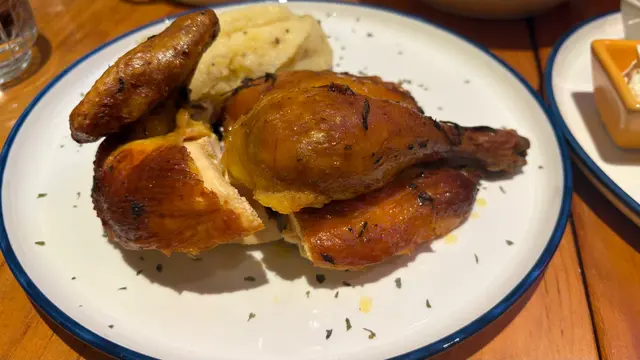 🍗 烤雞半隻配薯蓉 佢地每一日都有唔同既餐,星期一係烤雞,我地就試下;雞肉香口多汁,烤得啱啱好,外皮微脆,配埋香滑嘅薯蓉同肉汁,好滿足~