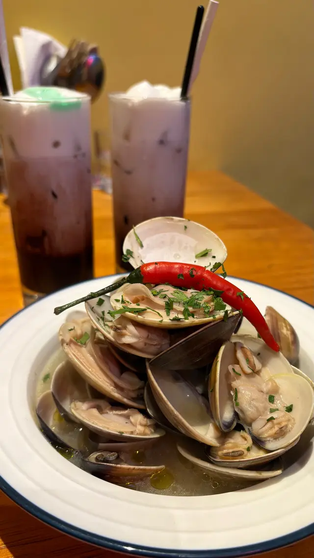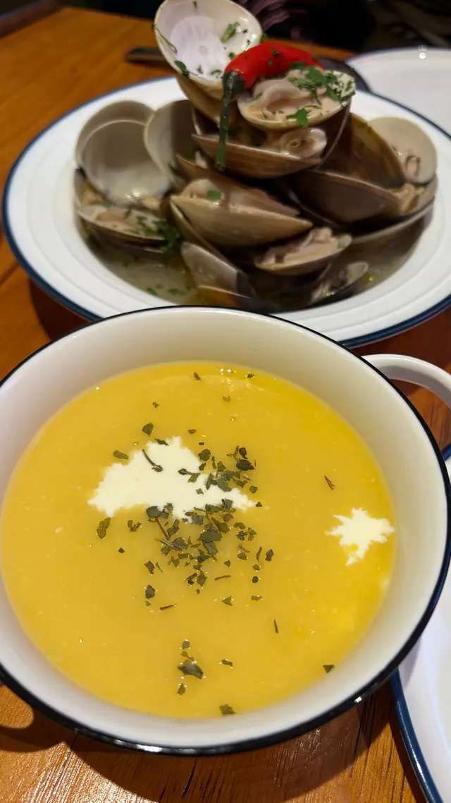 🦪 白酒汁煮鮮蜆 蜆肉飽滿厚實,數量都幾多,白酒汁香氣濃郁,帶少少蒜香,好啱送麵包或者白酒飲。