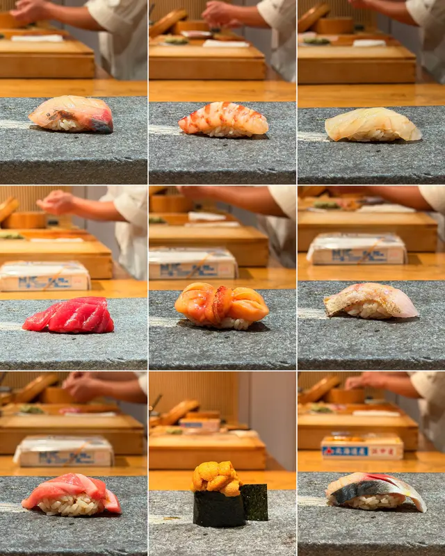 1️⃣ 深海池魚:肉質緊實,魚味清新! 2️⃣ 車海老:新鮮彈牙,鮮甜無比🦐 3️⃣ 左口魚:肉質細嫩,入口即化,感受魚肉嘅極致柔滑! 4️⃣ 醬油漬赤身:吞拿魚嘅濃郁風味與醬油嘅鹹香完美融合,令人回味無窮! 5️⃣ 赤貝:新鮮爽脆,帶有淡淡海水味! 6️⃣ 赤陸魚(喉黑魚):油脂豐腴,入口即化! 7️⃣ 拖羅:肥美豐腴,入口即溶,油脂香氣喺口中爆發!🤤 8️⃣ 北海道產 浜中產 海膽:雙層海膽嘅奢華享受,入口甘甜,好Creamy 9️⃣ 青魚:魚味濃郁,口感豐富,展現出魚肉嘅多樣性!