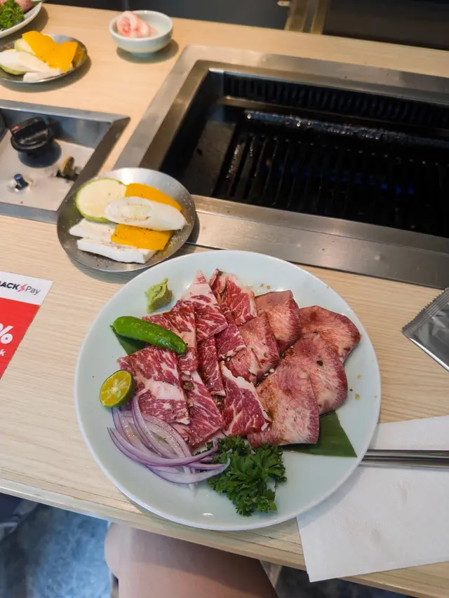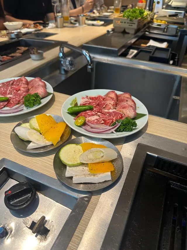 此次點用了薄切鹽燒牛舌及美國黑安格斯牛肉,牛舌口感爽脆彈牙,輕灑鹽粒提升鮮味,入口即化。黑安格斯牛肉則油花分布均勻,燒至五分熟時肉質鮮嫩多汁,肉香四溢。配搭特製燒肉醬汁和新鮮蔬菜,整體風味層次豐富,食後令人回味。