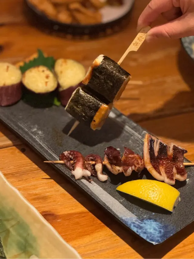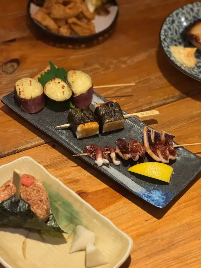 叫咗3串食物,分別係日本年糕、蕃薯同埋魷魚。日本年糕用紫菜包裹住,口感煙韌。蕃薯有2舊,口感結實。燒魷魚彈牙爽口,切斷方便食用
