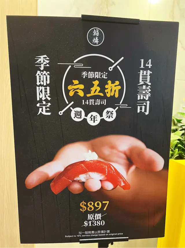 晚市時段設有三款級別的套餐,週年祭季節限定14貫壽司可享六五折,不過今日跟朋友選擇中級別的套餐。