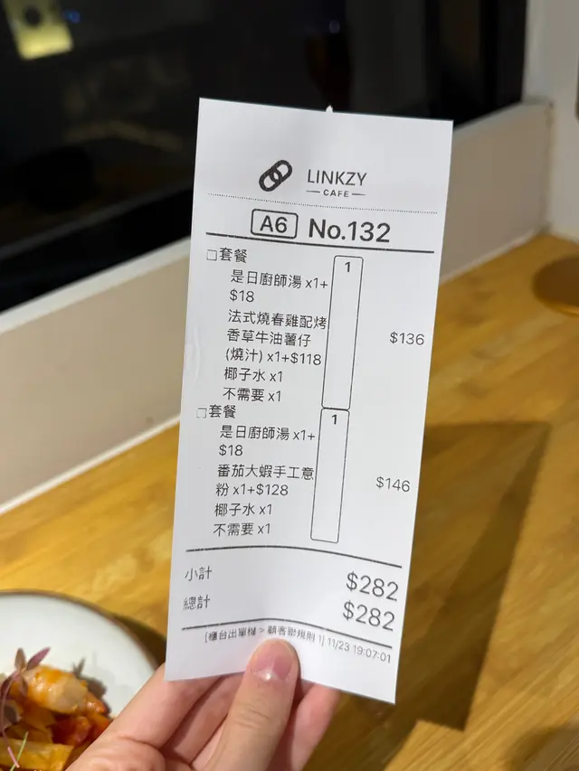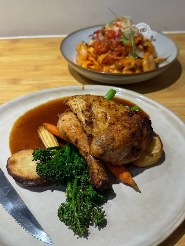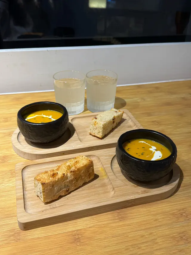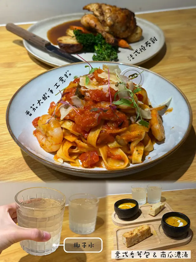 上環樓上cafe🍝❤️望住城景食晚餐 烏咚咚等级42025-11-23 关注 是日廚師湯 ✨南瓜濃湯呢款湯濃稠度高,有種綿密滑順嘅口感😋😋味道就好有南瓜味同奶香🎃🧡好鍾意呢個❗️.餐包 ✨意式香草包🌿🌬️香氣十足👃🏼🥖外層脆口,內裡緊實 非鬆軟.✨法式燒春雞 配烤香草牛油薯仔係有雞胸+雞腿🍗~佢地亦都香噴噴的!! 雞皮比較薄身,外層金黃酥脆。雞肉唔算好juicy,咬落就係緊實嘅口感🐓。.✨番茄大蝦手工意粉番茄蓉濃郁而酸酸甜甜🍅意粉質地彈牙,好沾啲醬汁,食落冇咩油膩感的。蝦肉爽口🦐.餐飲✨椰子水清新解渴,飲落冇額外嘅甜👌🏻好香椰味🤍🤍以上食记乃用户个人意见 , 并不代表OpenRice之观点。赞好分享上環樓上cafe🍝❤️望住城景食晚餐 Linkzy Cafe https://s.openrice.com/QrLT0ALvV00检举 张贴 评分5味道5环境5服务5卫生5抵食用餐途径堂食
