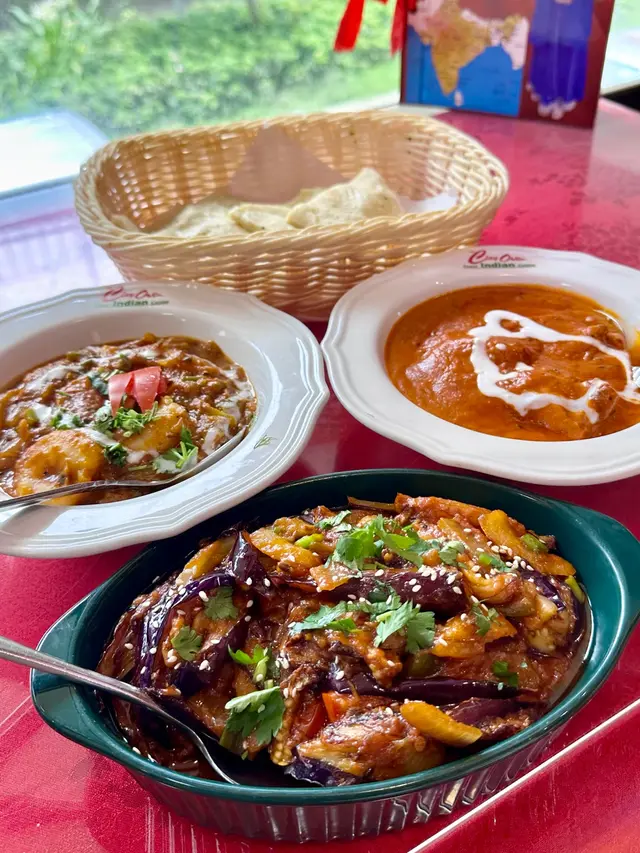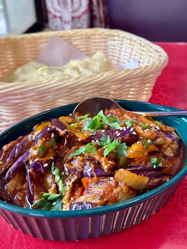茄子🍆燉煮得軟爛入味,搭配濃郁番茄咖喱,香料層次豐富,微辣中帶酸甜,適合配烤餅或者印度飯🙌🏻。