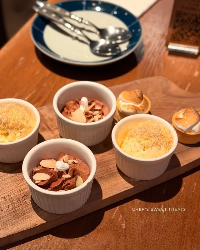 🍨 【Chef’s Sweet Treats】 食到最後,梗係要試下是日精選甜品啦!當日係一個熱情果慕絲蛋糕,面頭脆脆,底下酸酸甜甜,味道好平衡,食完咁多嘢都唔會覺得滯,為成餐飯畫上完美句號~
