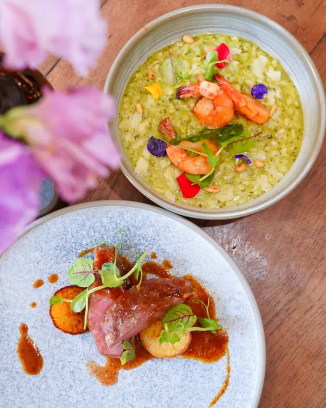 ▶️ 香煎虎蝦 配青醬意大利飯、酥炸羅勒及蒜蓉牛油 Pesto risotto with pan- fried tiger prawn, deep- fried basil and garlic butter ($268)