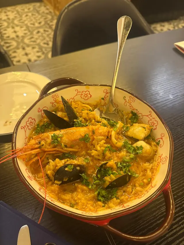 青口大蝦意大利飯都係驚喜之作!用咗葡式香料同番茄底煮嘅risotto,飯粒煮到剛好al dente,吸盡海鮮精華。青口大大隻,肉質飽滿;大蝦爽口彈牙,仲要開咗邊好貼心~最正係個汁,帶少少辣勁,非常開胃,我同朋友爭住刮清個碟!