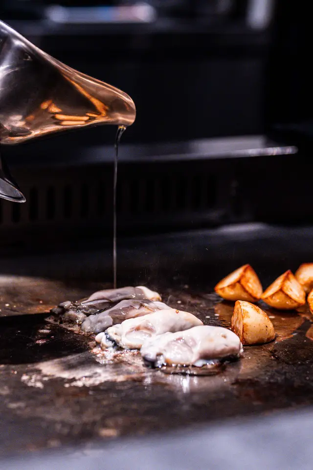 燒日本蠔外脆內軟,焦化牛油醬汁香濃,酸豆與新薯平衡口感,酸甜豐富。