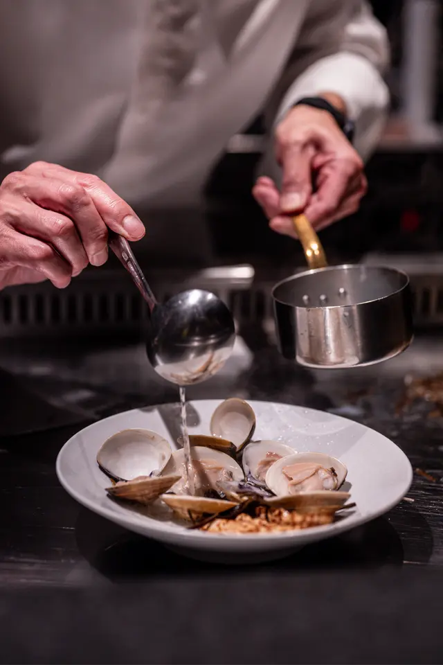清酒蒸蜆湯汁清甜,蜆鮮香濃郁,竹筍爽脆,湯底濃而不膩,現場蒸製增趣味。