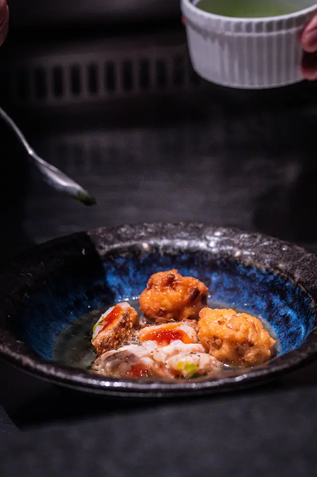 一行數人,所以除了廚師發辦餐目之外,還試了一些ᴀ ʟᴀ ᴄᴀʀᴛᴇ的項目。ᴄʜᴇꜰ ᴛᴏʀᴜ 先為我們準備了牛肉時雨煮佐煎大根,牛肉慢煮軟腍,微甜醬汁搭配清爽大根,蔥花薑絲添層次。另有粟米慕絲,質地細膩,甜香濃郁,入口輕盈,令人愛不釋手。