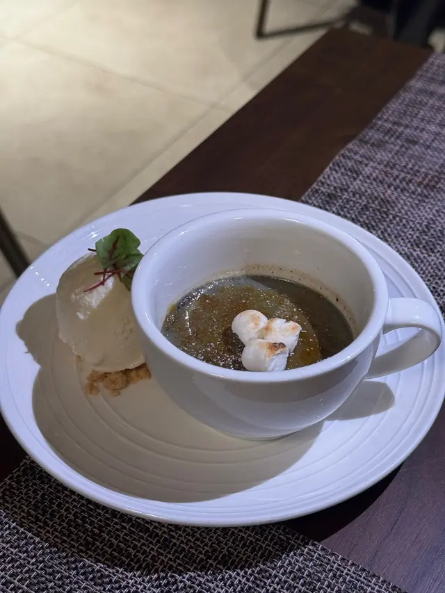 甜品同樣富特色,燉蛋芝麻味香濃唔甜,質感濃厚creamy😚側邊嘅雪糕豆味濃郁,果然芝麻同豆腐就係天生一對😆