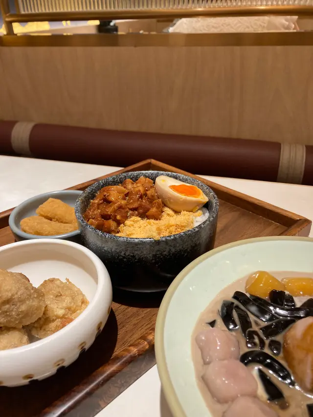 下午茶都可以食到多樣台式料理 cheryllotte等级42025-07-152K 浏览 关注 下午茶套餐都有好多選擇,今次試咗呢一款有鹽酥雞肉鬆滷肉飯,又有紫菜貢丸湯同地瓜酥一齊!鹽酥雞味道唔錯,但係第一次雞肉鬆滷肉飯,我覺得個肉鬆好甜,滷肉偏稀,唔算係我最鍾意嘅!雖然細細碗,但係我覺得好夠食一個女仔係啱啱好!紫菜貢丸湯嘅貢丸係好細粒,應該係一粒切成小塊咁樣,地瓜酥煙煙韌韌,我就幾鍾意食!呢一個套餐可以包嘢飲,就加錢要咗大甲芋頭芋圓鮮奶,芋頭泥唔錯!芋泥三色芋圓,係我另外揀嘅甜品,佢唔似仙草,而係涼粉,偏凝固,三色芋圓味道差唔多,煙煙韌韌!1以上食记乃用户个人意见 , 并不代表OpenRice之观点。赞好分享下午茶都可以食到多樣台式料理 台北倆伴 https://s.openrice.com/QrLT0z3akW0检举 张贴 评分4味道4环境5服务4卫生4抵食用餐途径堂食