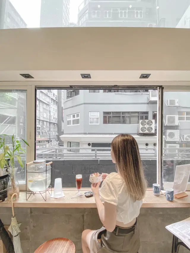 大大的趟窗 看著窗外雨點和蘭桂坊日間的街景也是不錯