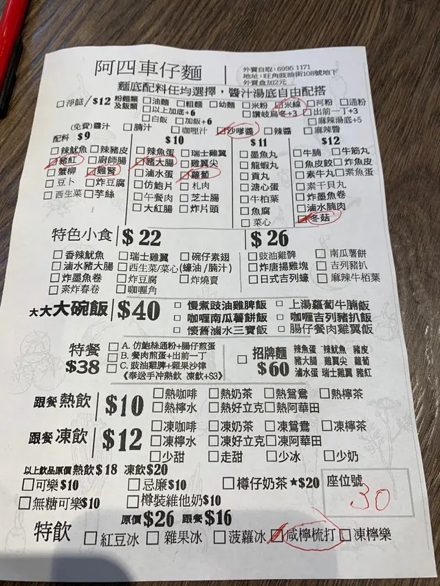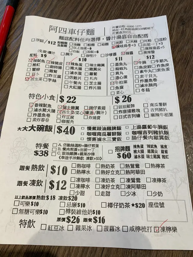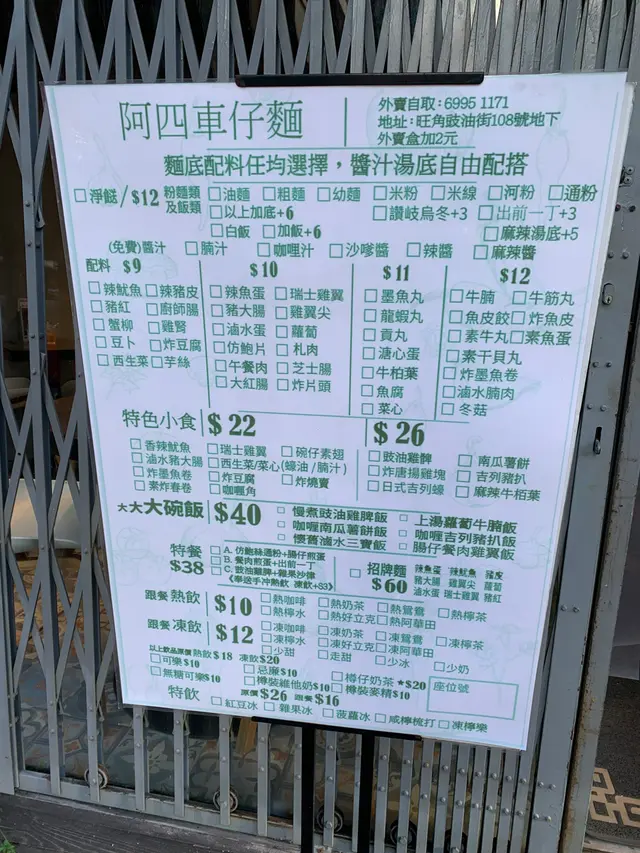 不可多得嘅車仔麵 周數精等级42021-09-2333 瀏覽 關注 行旺角, 想揾野食, 一D都唔難, 不過, 多數係細細間鋪, 坐得唔舒服, 而且仲要好快被趕走。 稍為行多兩步, 係豉油街居然又被我發現有間車仔麫, 沒有特別裝潢, 但平實寬敞, 所以就毫不猶豫入去食我至愛嘅車仔麪啦。點解鍾意食車仔麵?就係因為鍾意好多好多餸😂豬皮、魚蛋、牛腩、牛柏葉,尤其鍾意豬皮、牛腩,好入味😋朋友更瘋狂,叫咗豬紅、雞腎、豬大腸、蘿蔔、冬菇。兩碗麵淨係見到舖満哂餸!真係好滿足呀✌🏻✌🏻分別再叫咗小食:香辣魷魚、瑞士雞翼、油菜瑞士雞翼最好味,入味之餘,雞肉仍然好滑,小食分開上我至喜歡,唔使俾d湯浸淡哂👍🏻以上食評乃用戶個人意見 , 並不代表OpenRice之觀點。讚好分享不可多得嘅車仔麵 阿四車仔麵 https://s.openrice.com/QrLT0CwWzW0檢舉 張貼 評分5味道5環境5服務5衛生4抵食用餐途徑堂食