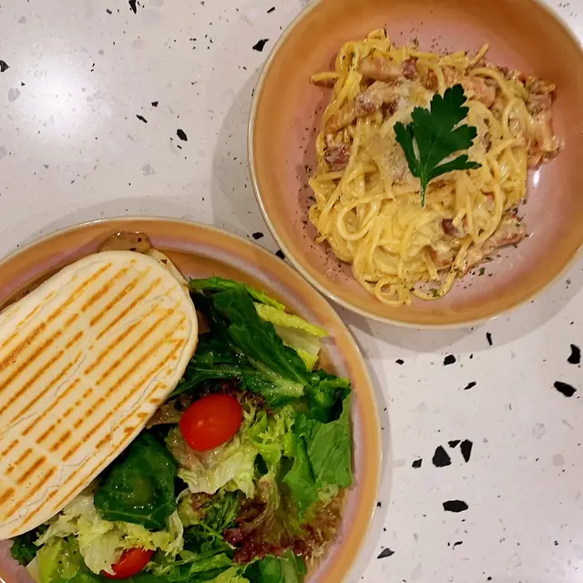 不喝咖啡也可以吃主食 Cclikefood等级42021-03-0771 浏览 关注 本來一心就是想吃「蟹肉味噌扁麵」原來只有美麗華分店有,才知道每間分店也有不同的限定菜式,但兩間分店相隔也頗遠,結果還是叫了一些吃過的款式。晚市的客量比起午市相差很遠,可能大家晚上也不想喝咖啡,非咖啡類的選擇又較少。厚切意大利煙肉配卡邦尼意粉$95厚切意大利煙肉配卡邦尼意粉 - $95 每條麵絲也沾滿蛋黃芝士醬汁,質地較濃淍,味道非常濃郁。意式會把煙肉厚切,入口感覺會更豐富,味道亦濃厚鹹鮮一點,不過豬腩肉還是有點瘦肥相間,油香味亦較濃郁。牛肉三文治伴蘑菇沙律配檸檬醋醬$85牛肉三文治伴蘑菇沙律配檸檬醋醬 - $85 三文治兩面麵包烘壓得很偏,酥脆得來中間又帶點柔軟,夾著大量蘑菇炒肥牛,薄切肥牛油花較多及平均,入口細膩多汁,有點鬆軟感。沙律拌以檸檬醋醬較為少見,醬汁散發出檸檬油精的芳香,更有檸檬汁清爽的口感,同時亦較為健康。以上食记乃用户个人意见 , 并不代表OpenRice之观点。赞好分享不喝咖啡也可以吃主食 Espresso Alchemy (海港城港威商場) https://s.openrice.com/QrLT0s48y00检举 张贴 评分4味道4环境4服务4卫生4抵食用餐日期2021-03-06用餐途径堂食用餐时段晚餐