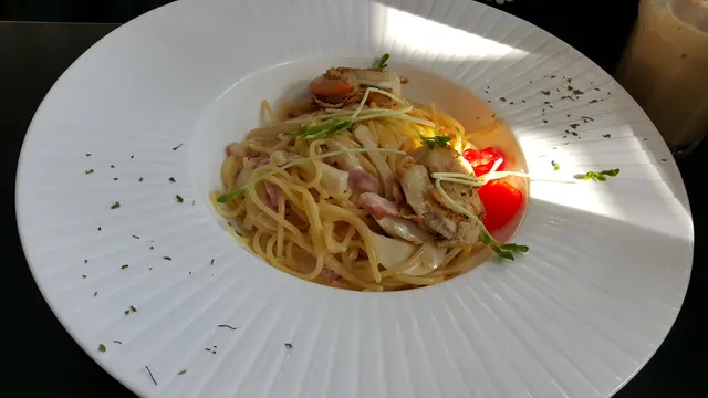 同事的珍寶帆立貝煙肉忌廉汁意粉$86.8, 忌廉汁不夠香濃,煙肉不是烤脆那種,比較普通。