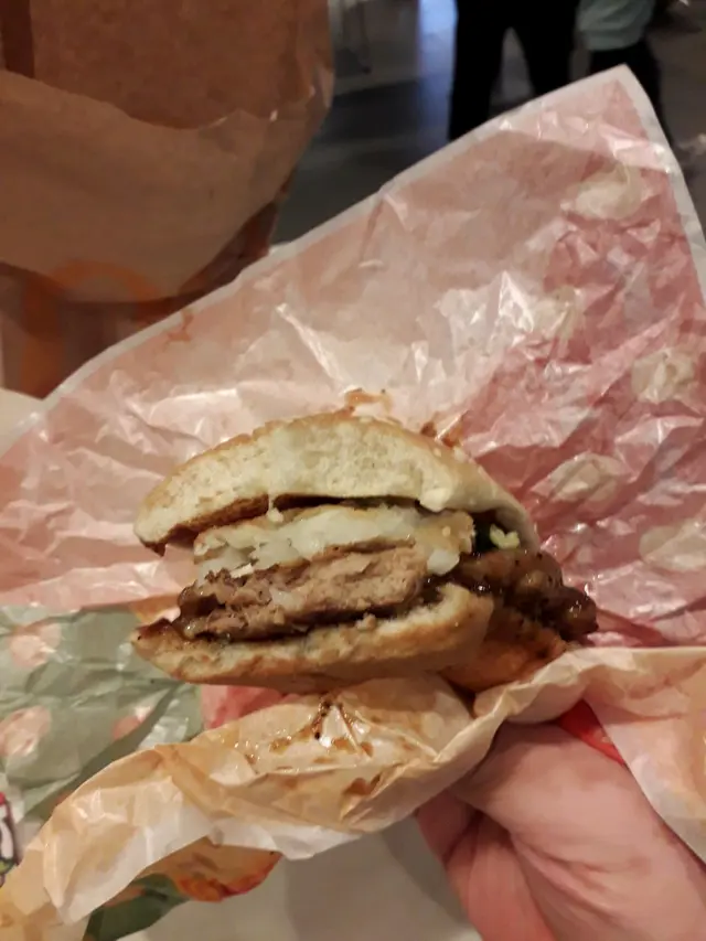 至於「黃金脆薯雞堡」裡面的辣味黑椒醬汁實際辣味程度,相對之下就沒有「黃金脆薯牛堡」裡面的醬汁辣味那麼強烈,或許是我食過辣味「黃金脆薯牛堡」,對辣味醬汁適應力大大增加吧。