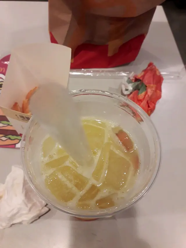 至於「尚德商場」「麥當勞」製造出來的「開運橙雜」酸味,相對沒有我之前喝過的「開運橙雜」酸味那麼強烈,這可能跟飲品實際構造有關,因為我發現「尚德」「麥當勞」「開運橙雜」裡面有很多甜味「蜜桃」和「櫻桃」。