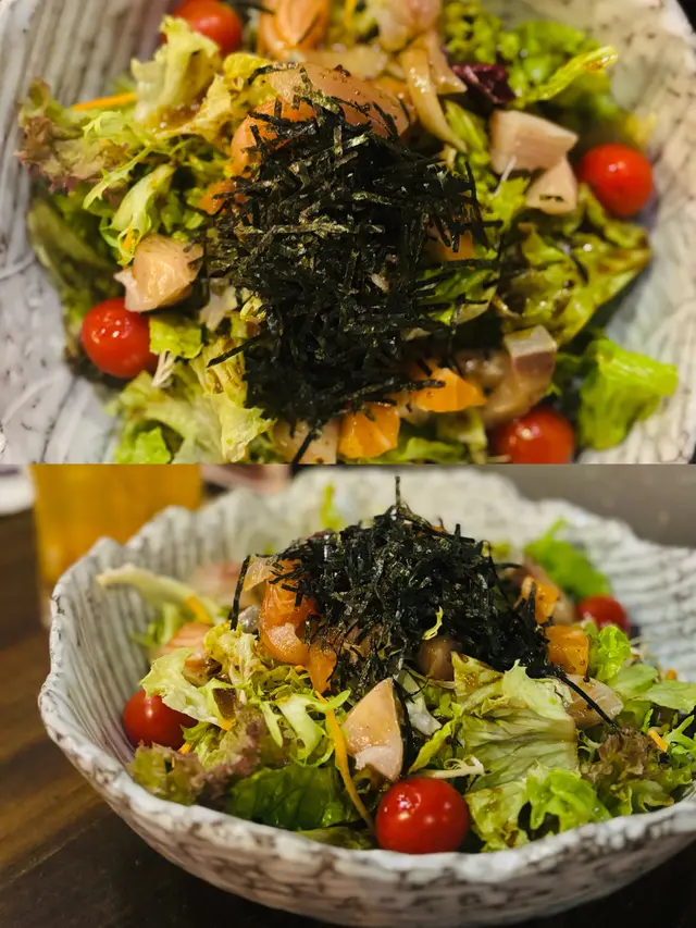 首先食咗個海鮮沙律做頭盤,入邊有三文魚刺身、吞拿魚刺身、鮮蝦🦐全部細細粒好易入口,而且沙律醬亦都好豐富,沙律菜亦都新鮮🥗🥗