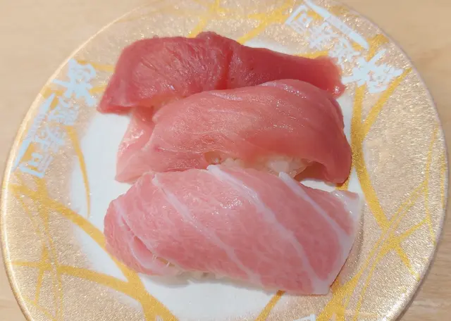 藍鰭吞拿魚拼($37)質素上食到赤身、中拖,大拖的差別,呢件大拖跟剛巧前一天到壽司郎的水準好得多,油脂豐盈,沒有渣