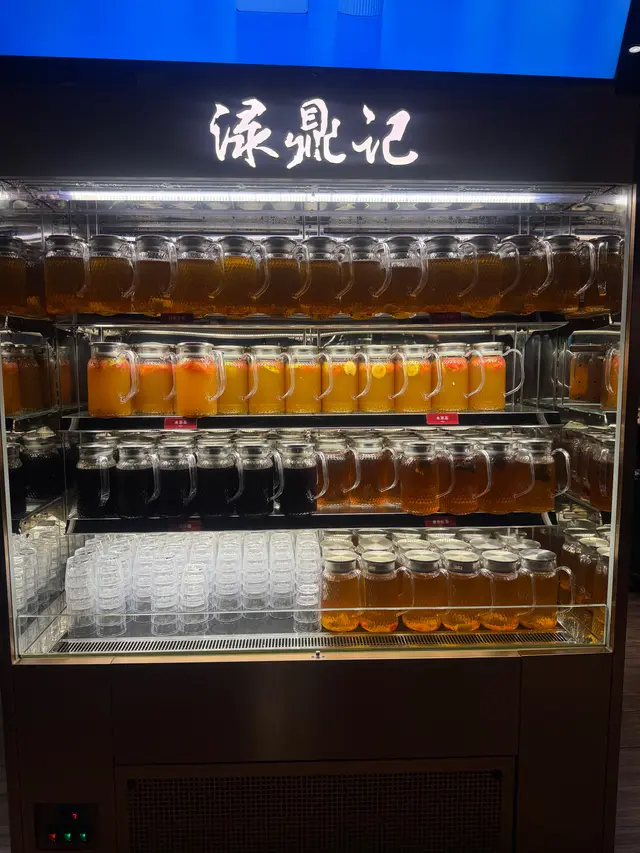 自助區有齊醬料、火鍋配料如蔬菜、豆腐、炸魚皮、丸類、麵類等,飲品選擇超多,有汽水、啤酒、特色罐裝飲品、茶類、涼茶,仲有一大jar嘅水果茶或涼茶,樣樣都好想飲好想試。