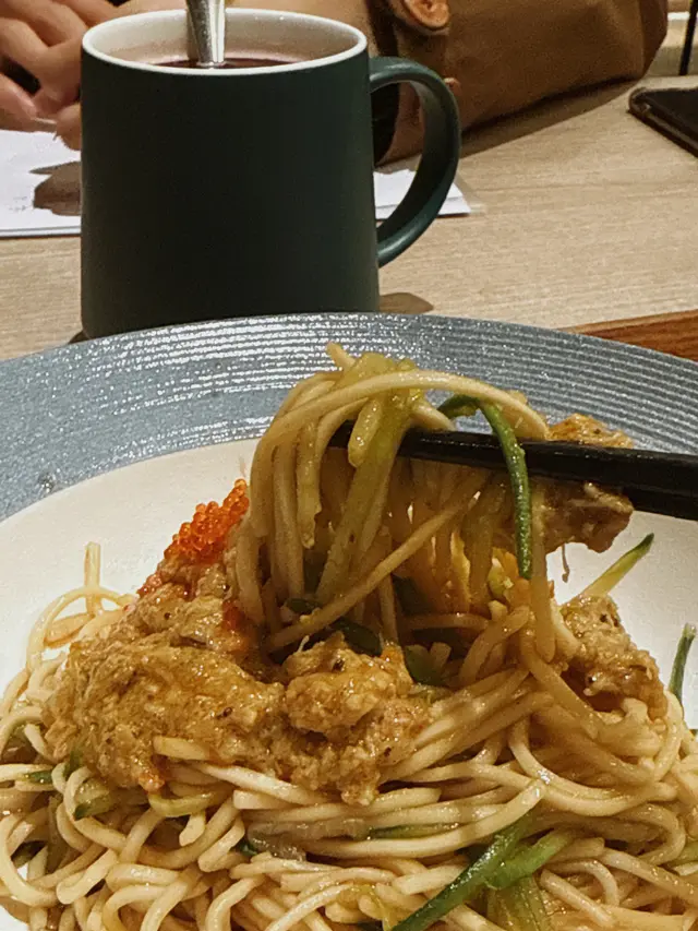 手撕雞麵份量正常,整體味道質感不過不失,普普通通。 蟹黃拌麵,份量真係少得離譜,平時我食量已經細,但係今次食完都係得個五成飽。🥹所以如果你係想食得飽嘅話,我就建議千祈唔好揀蟹黃拌麵啦。